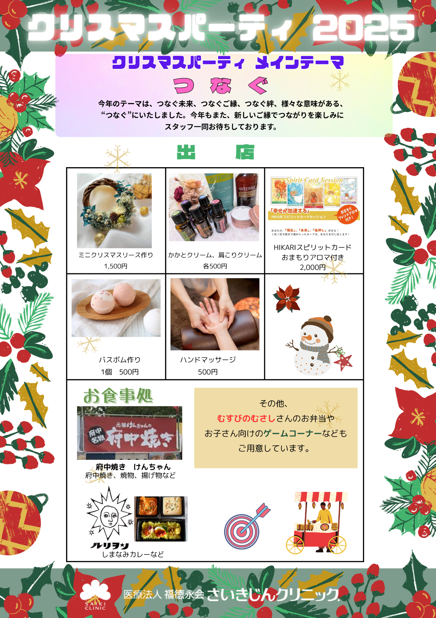 今回はさいきじんクリニックさんで毎年開催されている地域ぐるみのクリスマスパーティーに参加させていただけることになりました