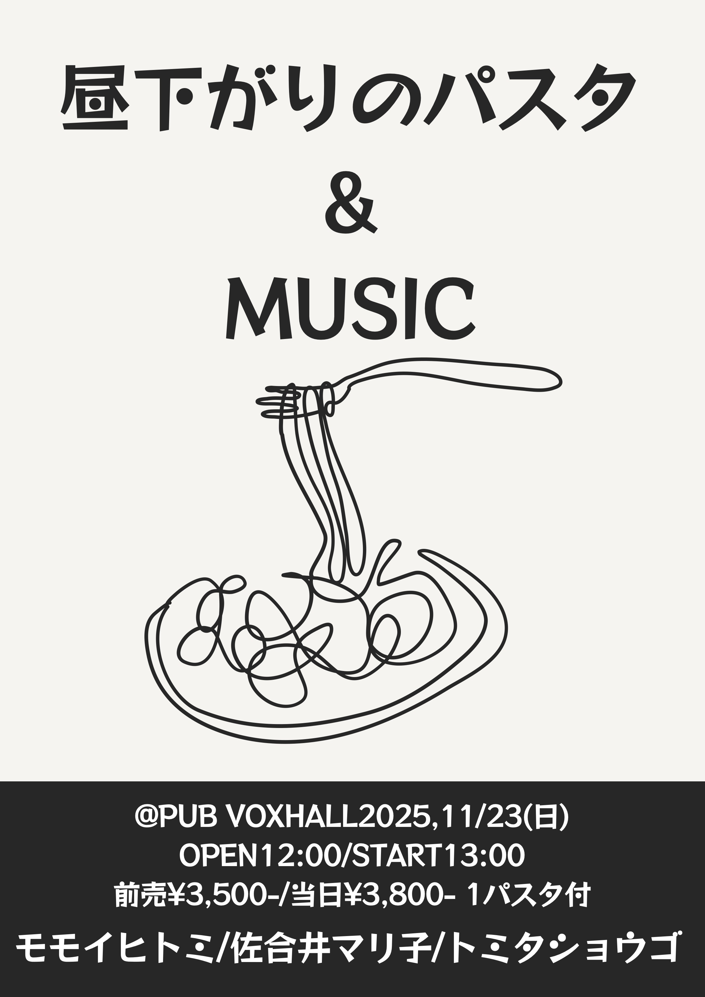 前売¥3,500/当日¥3,800 1パスタ付き(食事付)